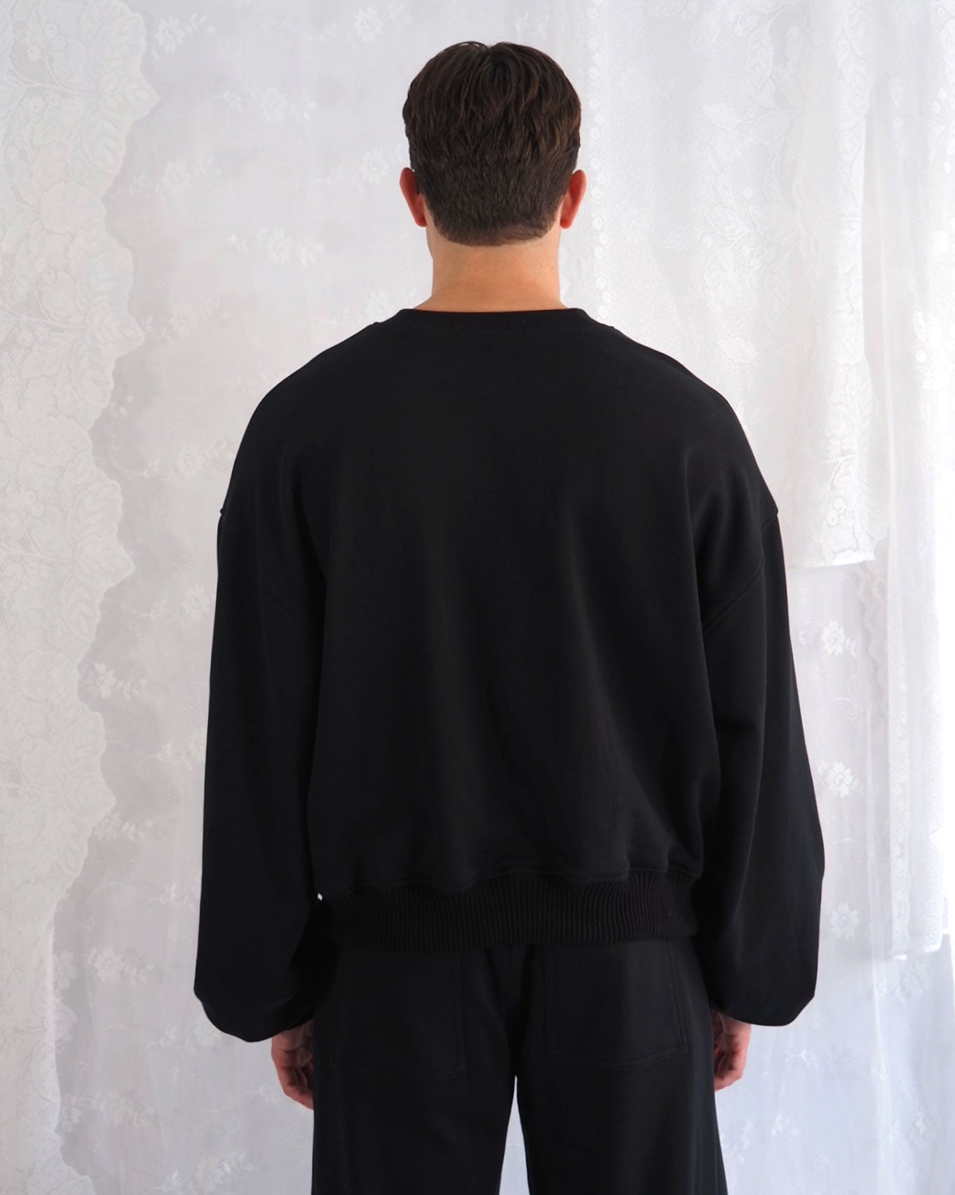 Der Borsum Crewneck besteht aus schwarzem Baumwoll-Sweat und bietet eine oversized Passform mit überschnittenen Schultern für einen lockeren Sitz.