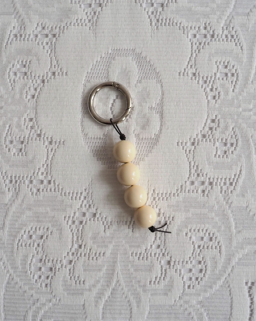 Ein runder Karabiner ermöglicht es, den Anhänger flexibel an Hose, Tasche oder andere Accessoires zu befestigen.