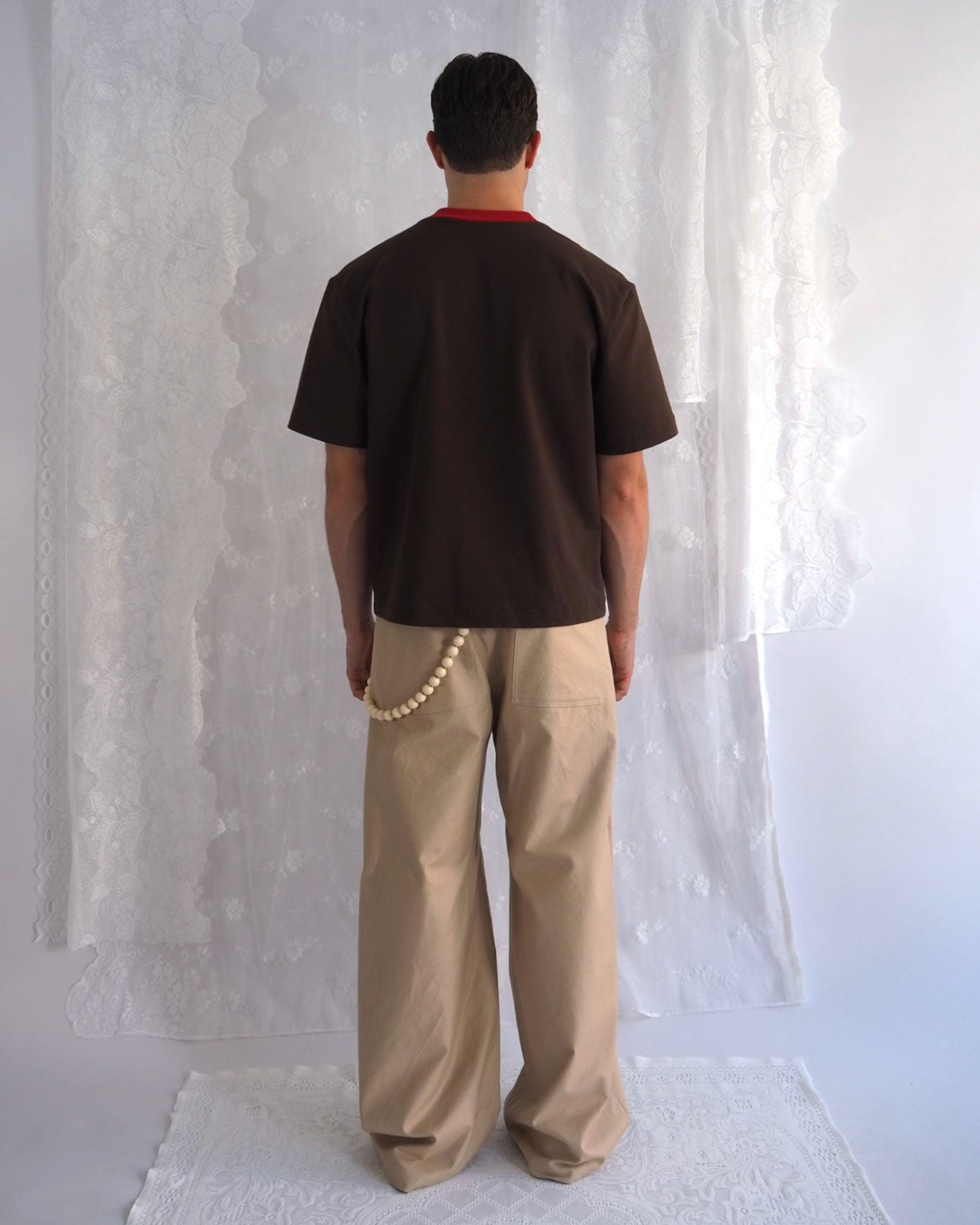 Die oversized Passform mit überschnittenen Schultern sorgt für eine entspannte Silhouette, während der breite Kontrastkragen aus hochwertigem Baumwollbündchen dem Design einen markanten Akzent verleiht.